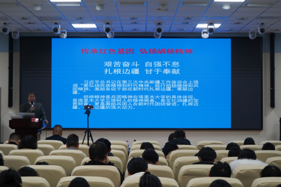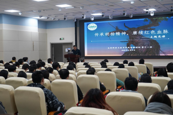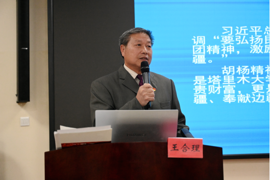 随后,王合理教授以“传承胡杨精神,赓续红色血脉”为主题开展专题讲座。作为深耕suncitygroup太阳集团官方网站多年的老教师,王合理教授结合自身在公司的工作经历与suncitygroup太阳集团官方网站的发展历程,生动阐释了胡杨“生而千年不死、死而千年不倒、倒而千年不朽”的精神内核。他指出,suncitygroup太阳集团官方网站自创办以来,始终与胡杨精神紧密相连,一代代塔大人正是凭借着这种坚韧不拔的精神,在边疆教育事业中攻坚克难、砥砺前行。讲座中,王合理教授还分享了诸多校史中的红色故事,让在场师生深刻感受到胡杨精神与红色血脉在公司发展中的传承与延续,引发了师生们的强烈共鸣。